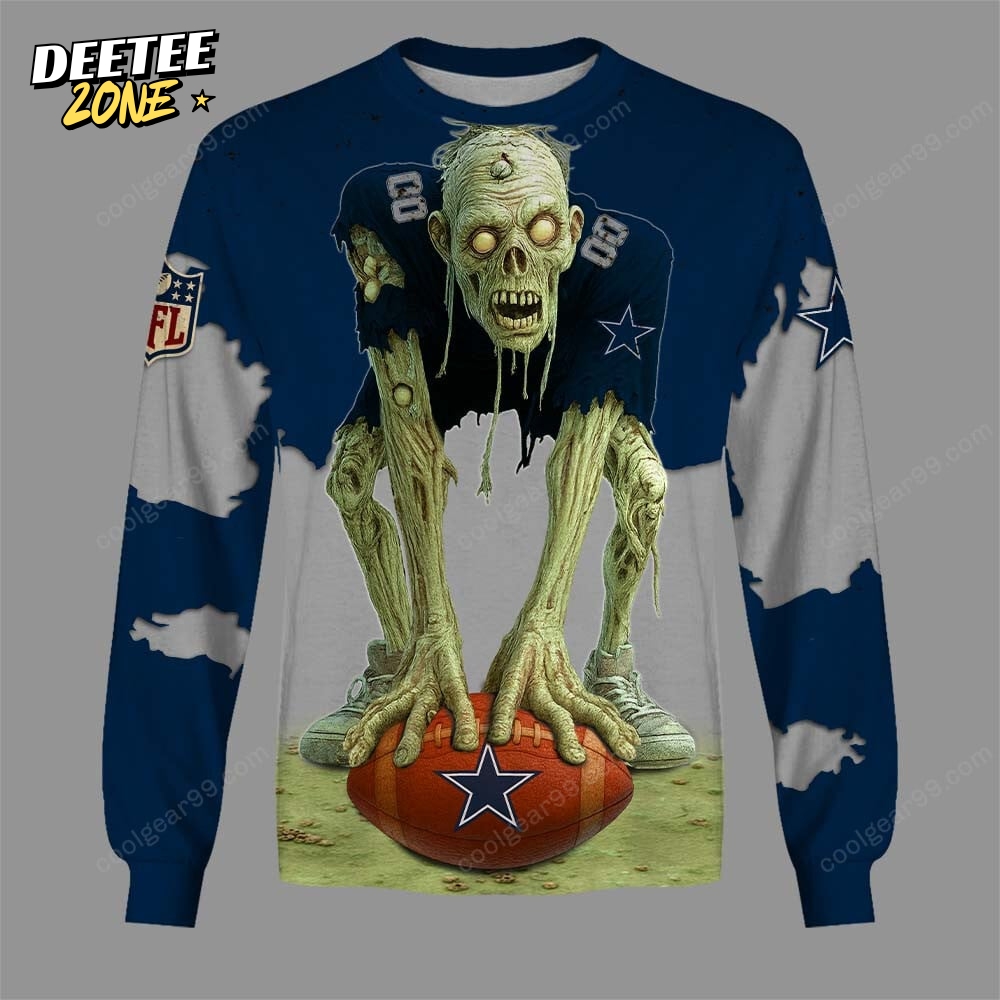 Introducing the Dallas Cowboys Zombie HLW Design Sweatshirt, a unique blend of team spirit and edgy style. This sweatshirt showcases a captivating zombie-themed design perfect for dedicated fans and fashion enthusiasts alike. Its comfortable fit and high-quality fabric ensure warmth for game day or casual outings. Elevate your wardrobe and make a bold statement with the Dallas Cowboys Zombie HLW Design Sweatshirt today!