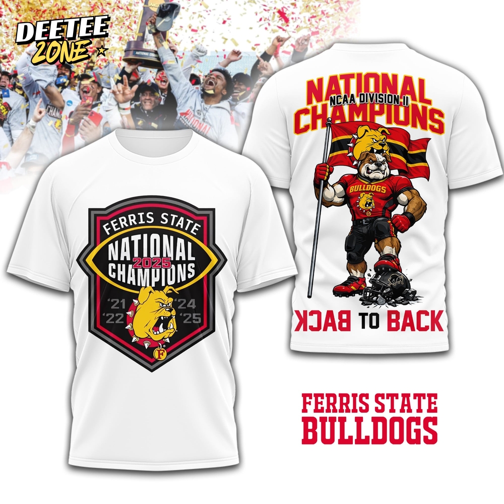 Ferris State Bulldogs | Premium NCAA Division II Champions 3D Shirt TD